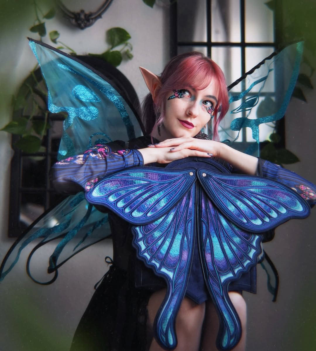 This Metamorphosis backpack 💙 Created for fans of fantasy, nature, and unique craftsmanship. The perfect fantasy backpack for festivals, cosplay, and magical outfits. Movable 3D wings make this enchanted backpack a true work of art you can wear every day.